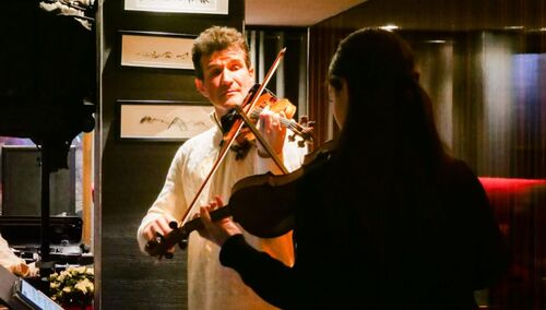 Клое Русев свири на цигулка от Андреа Кастаниери от 1740 г.