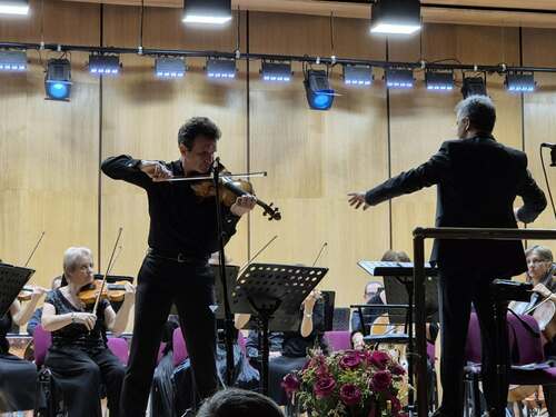 Светлин Русев, който от години си сътрудничи с плевенските филхармоници и с композитора и диригент М. Ламбов, ще изпълни и красивата цигулкова творба Интродукция и Рондо капричиозо от Камий Сен-Санс.