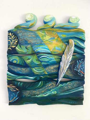 – Всеки материал е достоен да се превърне в изкуство, но и аз си имам любими. Обичам дървото, старите ръждясали метални елементи, глината, с която оформям малки пластики, платното и всичко това в съчетание ми помага, за да изразя емоцията, която ме вълнува, в картина. А те са триизмерни, разчупват пространството и равнината- планини с остри върхове, дъгата като огърлица на буйно поле, ветрилото на вятъра, нощните птици, които се плъзгат по мрака-цял един свят от релефи.