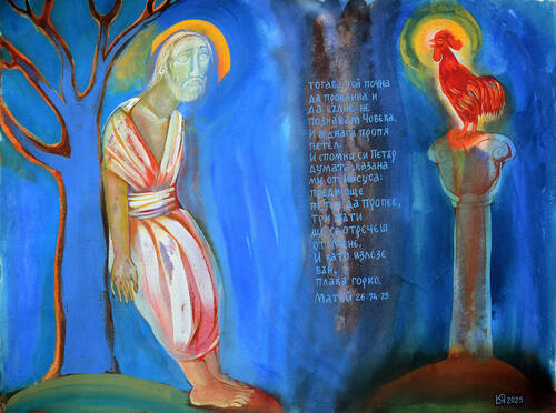 Има и друго общение – когато демоните летят към нас, за да нападнат душите ни, да ни изкушат или обезверят. „Отречението на Петър“ е именно това нападение и страдание на Симон, който отричайки се трикратно от Господ престава да бъде Петър… Но битките са неизбежни и дори необходими, ако желаем да стигнем по-близо до Бога. Надеждата е във Възкресението, а Господ Е винаги там, очакващ нашето покаяние и отворил прегръдка към блудния син, който се завръща…