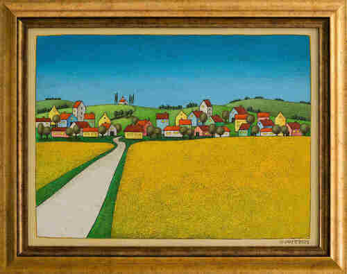 Картините са предимно красиви пейзажи от различни места в България, Гърция, Италия и Черна гора. Местността „Метеора“ в Гърция, чието име в превод означава „висящ в небето“ или „горе в небесата“ дава началото на вдъхновението за тази изложба. Островът „Св. Стефан“ в Черна гора го продължава, а погледът към Атон и към тосканските дървета създава следващите произведения. България е също не по-малко интересно и вдъхновяващо място, и затова е отразена във всичките й сезони. Наситени жълти рапични поля, червени пламтящи залези, есенни оранжеви дървета, пролетни тучни ливади и зимни къщички с пушещи коминчета – всичко това е събрано в тази изложба, а зрителите ще могат отново да се насладят на красивите пасторални идилии.