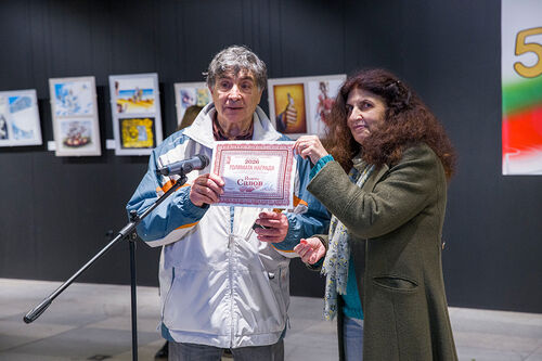 Наградата на секция Карикатура - СБХ за цялостно творчество бе присъдена на Йовчо Савов / фотограф: Виолета Апостолова – Лети