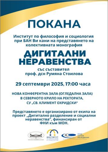 Дигитализацията в България върви с двойно лице – от една страна носи нови възможности за образование, работа и участие в обществото, а от друга задълбочава вече съществуващи социални неравенства. Това показва колективната монография „Дигитални неравенства“ (2025), под редакцията на проф. дсн Румяна Стоилова, издадена от Университетско издателство „Св. Климент Охридски“.