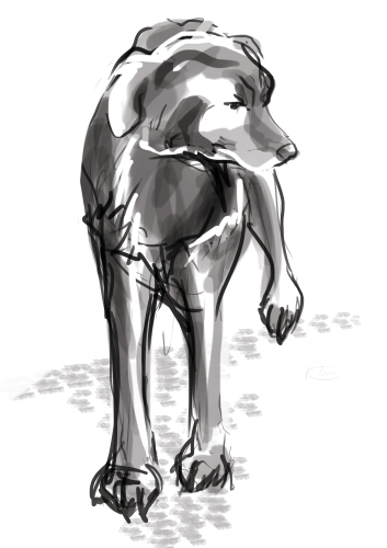 Цикълът започва с живо, телесно присъствие – кучето, изправено на задни лапи, очи в очи с човека, почти човек. След това постепенно присъствието на топлия жив, игрив персонаж изтънява, къса се, превръща се в липса, в отсъствие, което се разширява: „празна купа“, „прах и тишина“, „златна гора, но без Балкан“. Всяка от тези фрази подчертава невъзвратимостта на живота и невъзможността да се влезе в пространството на смъртта.